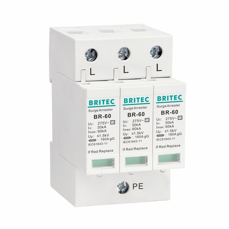 بريتيك 1P فئة الثانية SPD 60kA T2 Surge Arrester جهاز حماية الطاقة المترددة AC